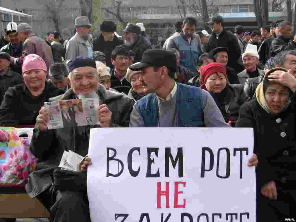 Курултайдын катышуучулары “Үй-бүлөлүк башкарууга жол жок!”, “Исмаил Исаковго боштондук!”, “Бүлекбаев, Аргымбаев, Рыскуловго боштондук!”, “Гуревичти сотко!” “Азаттыкка азыттык!” деген ураандар жазылган плакаттарды көтөрүп турушат.