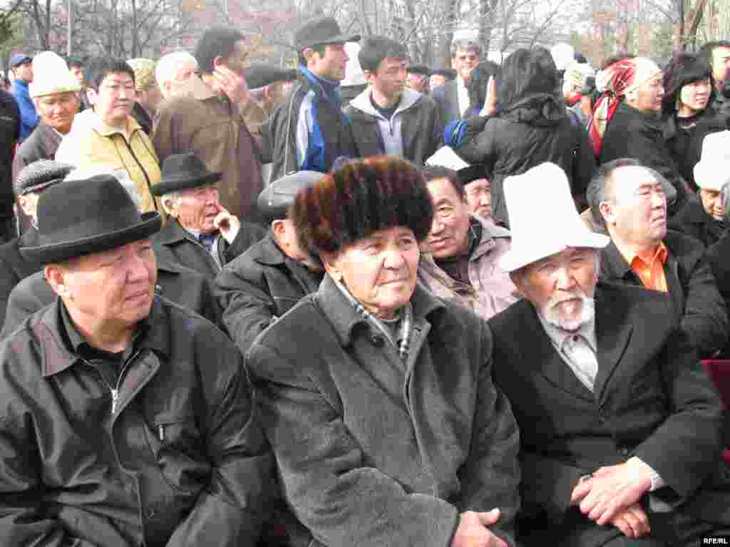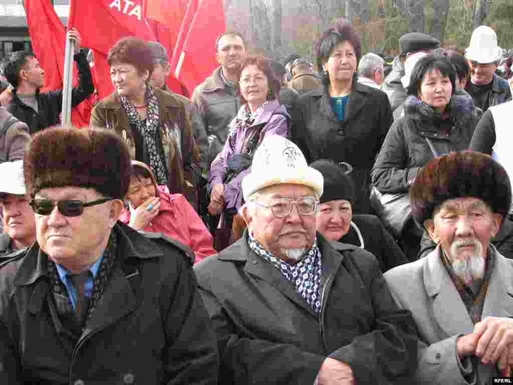 Чогулган элдин алдында БЭКтин төрагасы Алмазбек Атамбаев, лидерлер Роза Отунбаева, Эмил Каптагаев жана «Ата Мекен» партиясынын төрагасы Өмүрбек Текебаев, орун басары Дүйшөн Чотонов ж.б. турушат.
