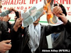 Демонстранттар Билим берүү министри Мисир Мардановдун сүрөтүн өрттөштү