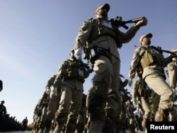 Ирак. Шииттердин Мехди армиясынын жоокерлери Улуу Аятолла Мухаммед Садык ас-Садрдын өлгөнүн эскерип, аскерий парадддан өтүшүүдө. Нажаф шаары. 13-октябрь 2010