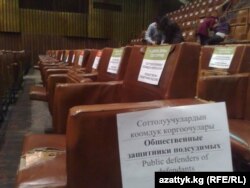 Сотко бир күн калганда уюштуруучу топ ар бир отургучка ким кайсы тарапка отурары тууралуу жазылган кагаз чаптап, майда-барат техникалык маселелерди чечүүдө. Жабырлануучу тарап менен соттолуп жаткандардын тарапкерлерин жайгаштырууга бул ирет өзгөчө көңүл бурулуп жаткан экен. Себеби Ош окуясы боюнча сотто эки тараптын ортосунда ур-токмокко алуу өңдүү фактылары катталган болчу. Андыктан жабырлануучу жана соттолуучулардын жакындарын чоң залдын эки жагына бөлүп отургузуп, ортосуна бейөкмөт уюмдардын, массалык маалымат каражаттардын жана ыктыярдуу элдик кошуундун өкүлдөрүн жайгаштыруу чечилген.