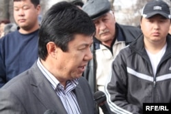 Темир Сариев: - Ооба, биз муну алдын-ала билгенбиз. Ошон үчүн «Ак шумкар» партиясы атайын демилге көтөрүп чыгып, делегаттарга көйгөйлүү маселелерди карап, ошол боюнча чечим кабыл алсын деп, бүгүнкү эртең менен курултайдын делегаттарына өзүбүздүн баракчаларды, сунуштарды берели деп барганбыз. Бирок тилекке каршы бизди 8.40да кармап кетишип, «Ак шумкар» партиясынын 40тай өкүлүн, анын 20сын Ленин районуна алып барып, 20сын, анын ичинде мен дагы бармын 1-Май районуна алып барып, эртең менки тогуздан баштап, мына азыр саат 6 жарым болду, биз 1-Май сотунда отурабыз.