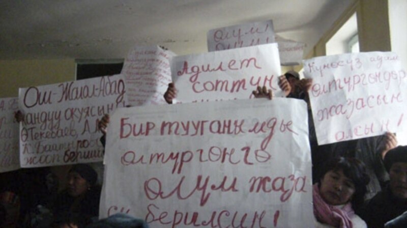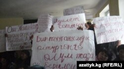 Сотко плакат даярдап келген жабырлануучулар. 23-ноябрь, 2010-жыл