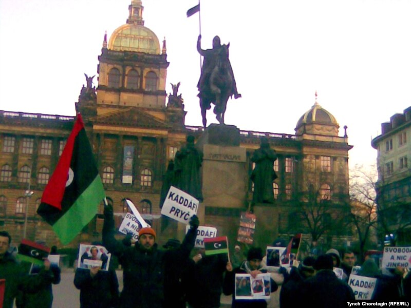 Дүйшөмбү күнү Чехиянын ордо шаары Праганын Вацлав аянтында бир катар ливиялык атуулдар чогулуп, Каддафинин өкмөтүнүн учурдагы саясатына нааразылыгын билдиришти.