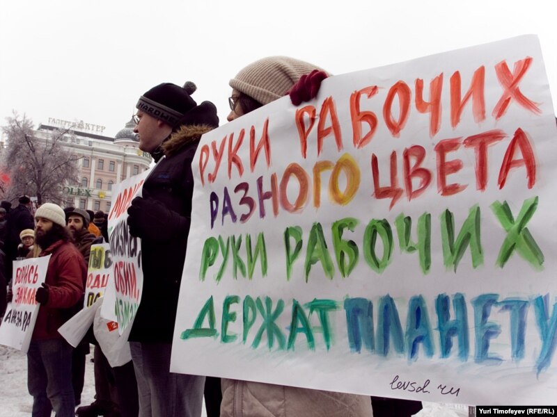 Алар 11-декабрда Кремлдин кызыл сепили алданда фашисттик айкырыктар коштоосу астында улутчул жааттын өңүнө карап жек көрүүгө, мигранттар менен теги кавказдыктарга каршы чакырык таштоосуна нааразылык билдирип турду: