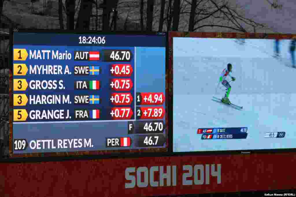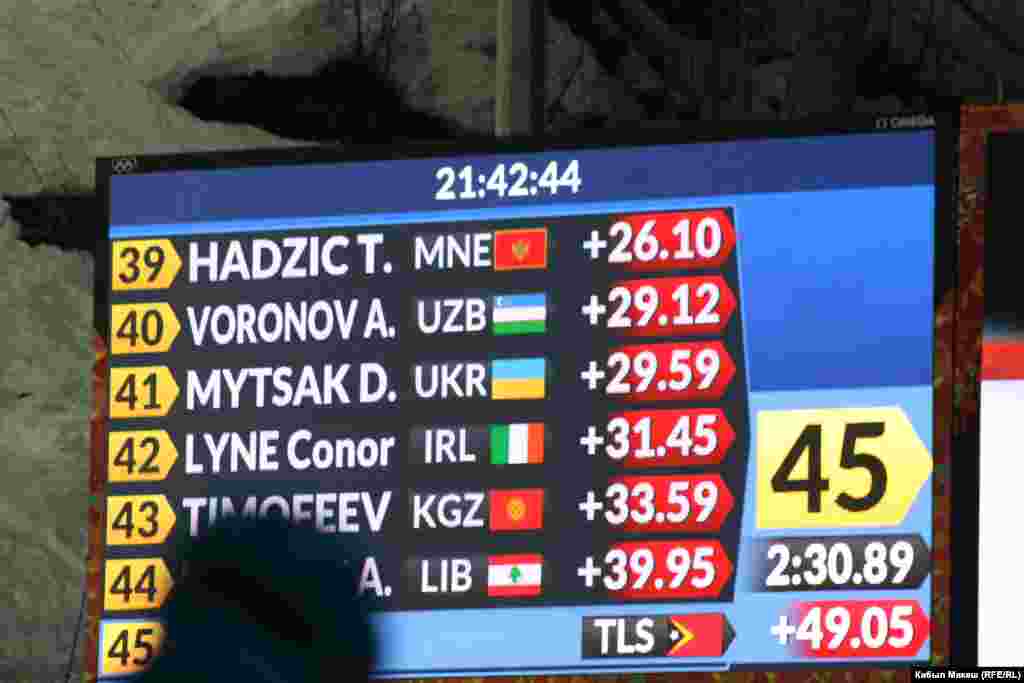 19 жана 22-февралда тоо лыжасынын гигант-слалом жана слалом түрлөрү боюнча мелдешке кыргызстандык Евгений Тимофеев катышты. Мелдеш Сочи шаарынан 60 км. алыстагы "Роза Хутор" тоо лыжа базасында өттү. Мында дүйнө жүзүнөн тандалган 117 спортчу катышып, Тимофеев марага 41-болуп келди.